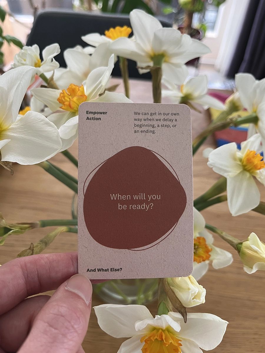 These questions match the categories of the And What Else? coaching card deck, which you might have seen prototypes of last year. Just in time for spring, I’ll have some fresh copies for sale soon… stay tuned! (Or message me to reserve a copy.)